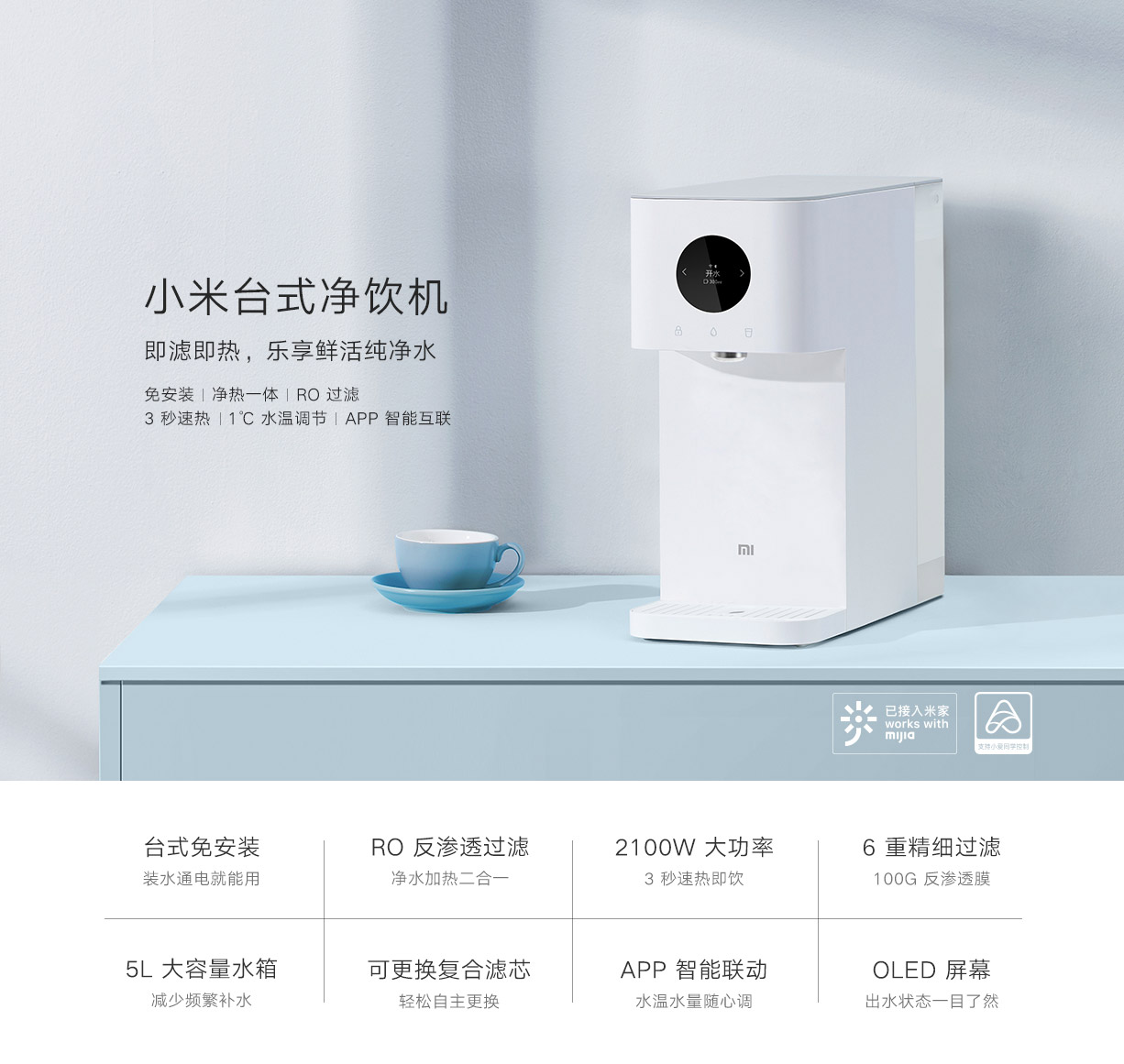 小米家用臺式凈水機加熱凈水器 凈飲一體機 凈水加熱二合一 免安裝 3秒即熱 RO反滲透 智能互聯(lián) MRH112