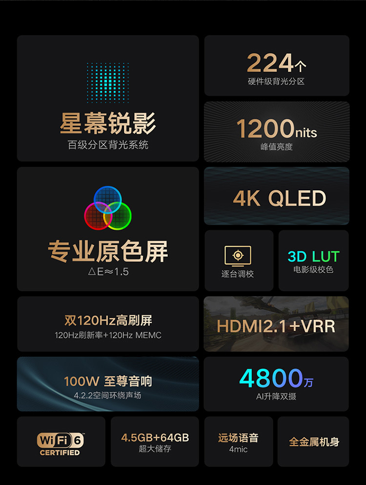 小米電視6至尊版65英寸 4K QLED 百級分區背光 4.5+64GB 遠場(chǎng)語(yǔ)音MEMC防抖 游戲智能電視機